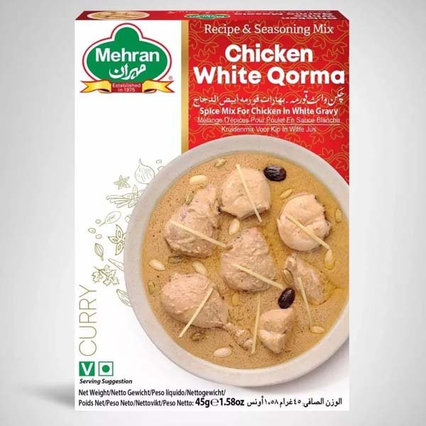 Made from a blend of carefully selected spices including cardamom, cinnamon, nutmeg, white pepper, and aromatic herbs, Mehran’s White Qorma Masala delivers that signature velvety texture and authentic taste. Just combine with yogurt, cream, or cooking oil to create a luxurious, restaurant-quality dish at home.